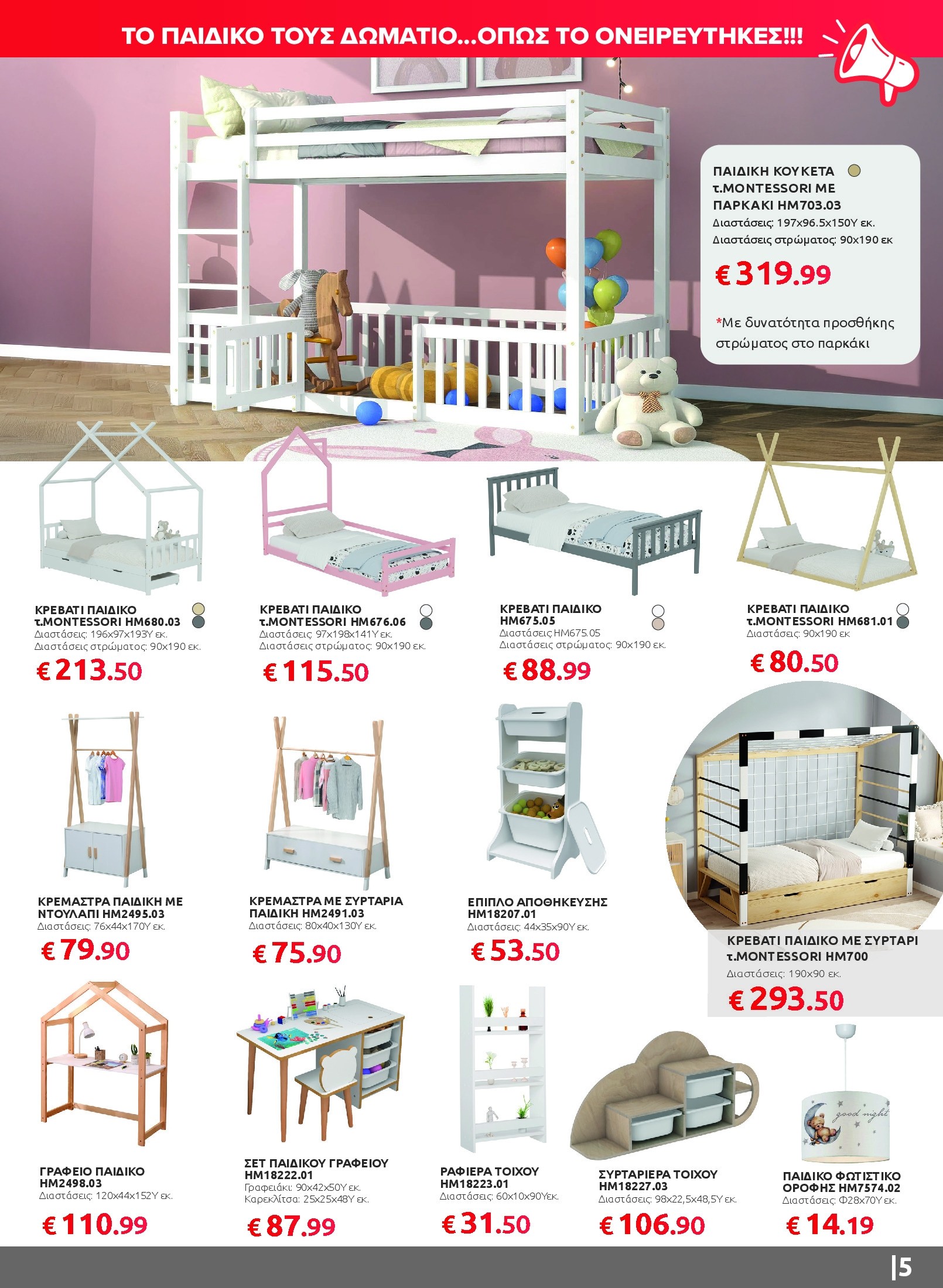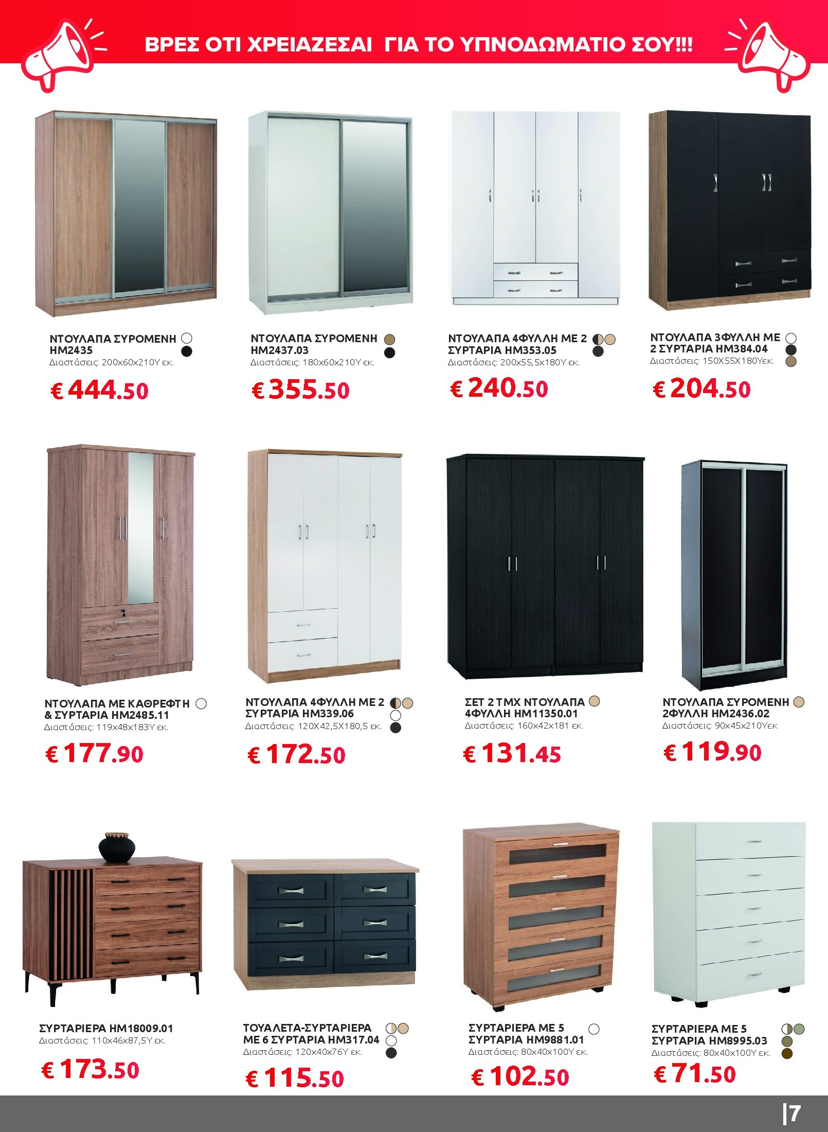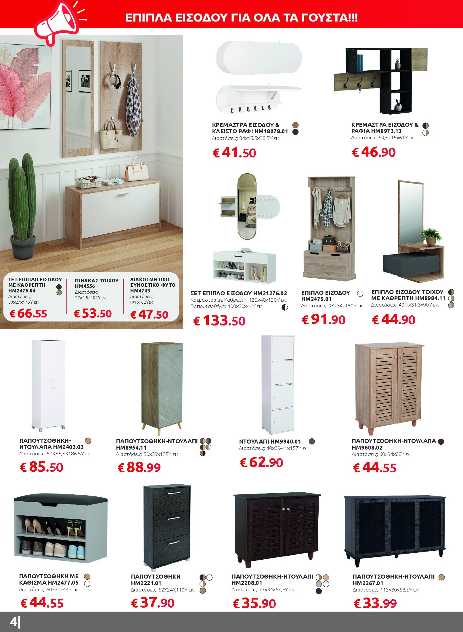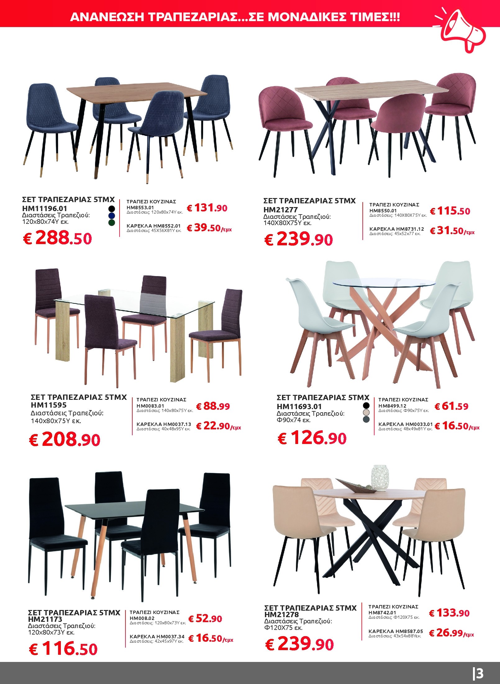 Αν ψάχνετε να ανανεώσετε το καθιστικό σας, θα βρείτε γωνιακούς καναπέδες, πολυμορφικά σετ και βοηθητικά τραπεζάκια που συνδυάζουν άνεση και σύγχρονο design. Για το υπνοδωμάτιο, οι προσφορές περιλαμβάνουν πλήρη σετ κρεβατιών με στρώμα και κομψές ντουλάπες σε διαφορετικά σχέδια και διαστάσεις, ενώ στην τραπεζαρία ξεχωρίζουν τα σετ 5 τεμαχίων με μοντέρνες καρέκλες και ανθεκτικές επιφάνειες.