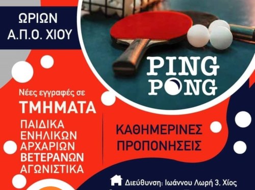 Ξεκινούν οι εγγραφές στον «ΩΡΙΩΝ Α.Π.Ο. Χίου» για την επιτραπέζια αντισφαίριση