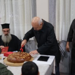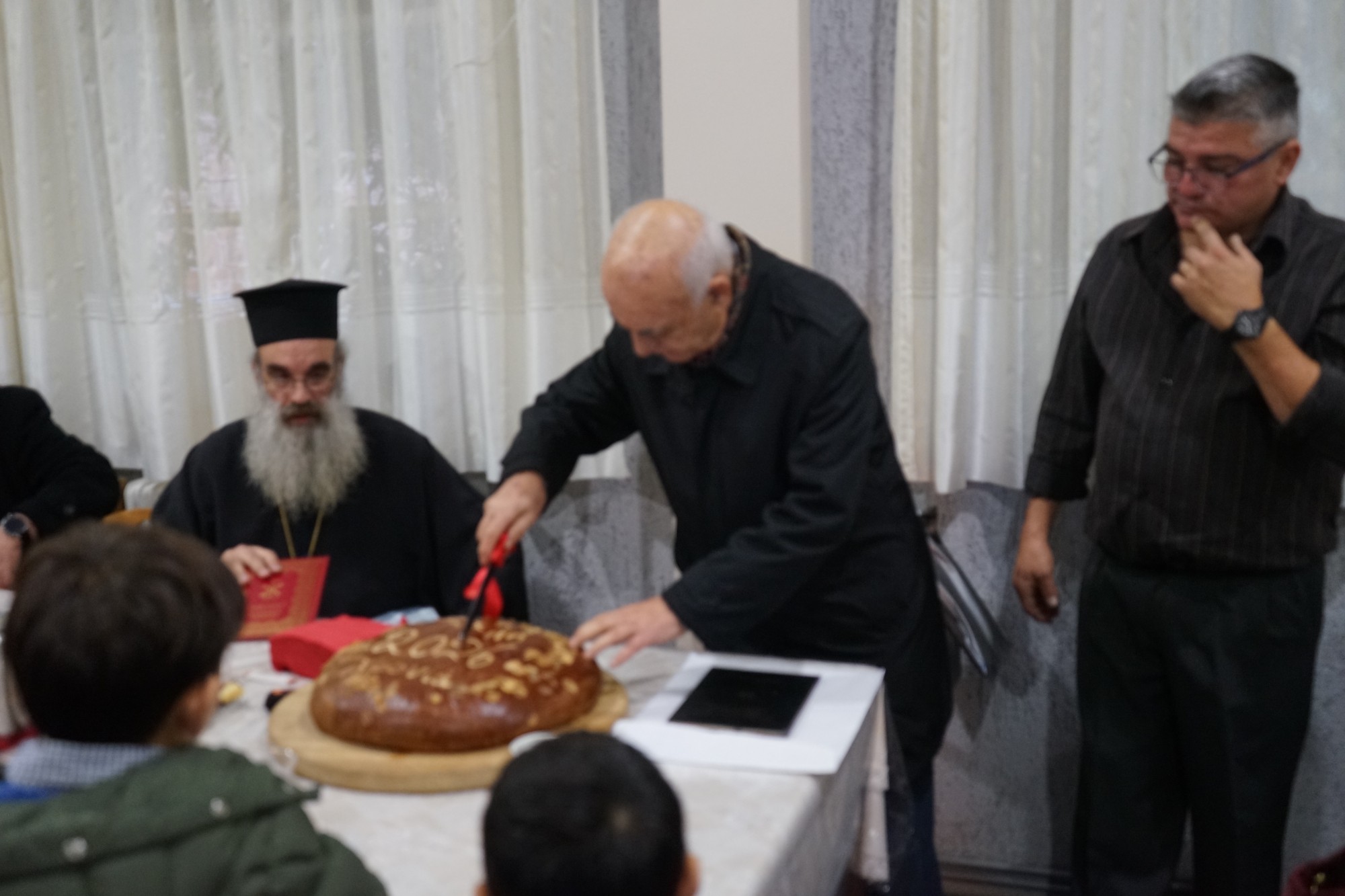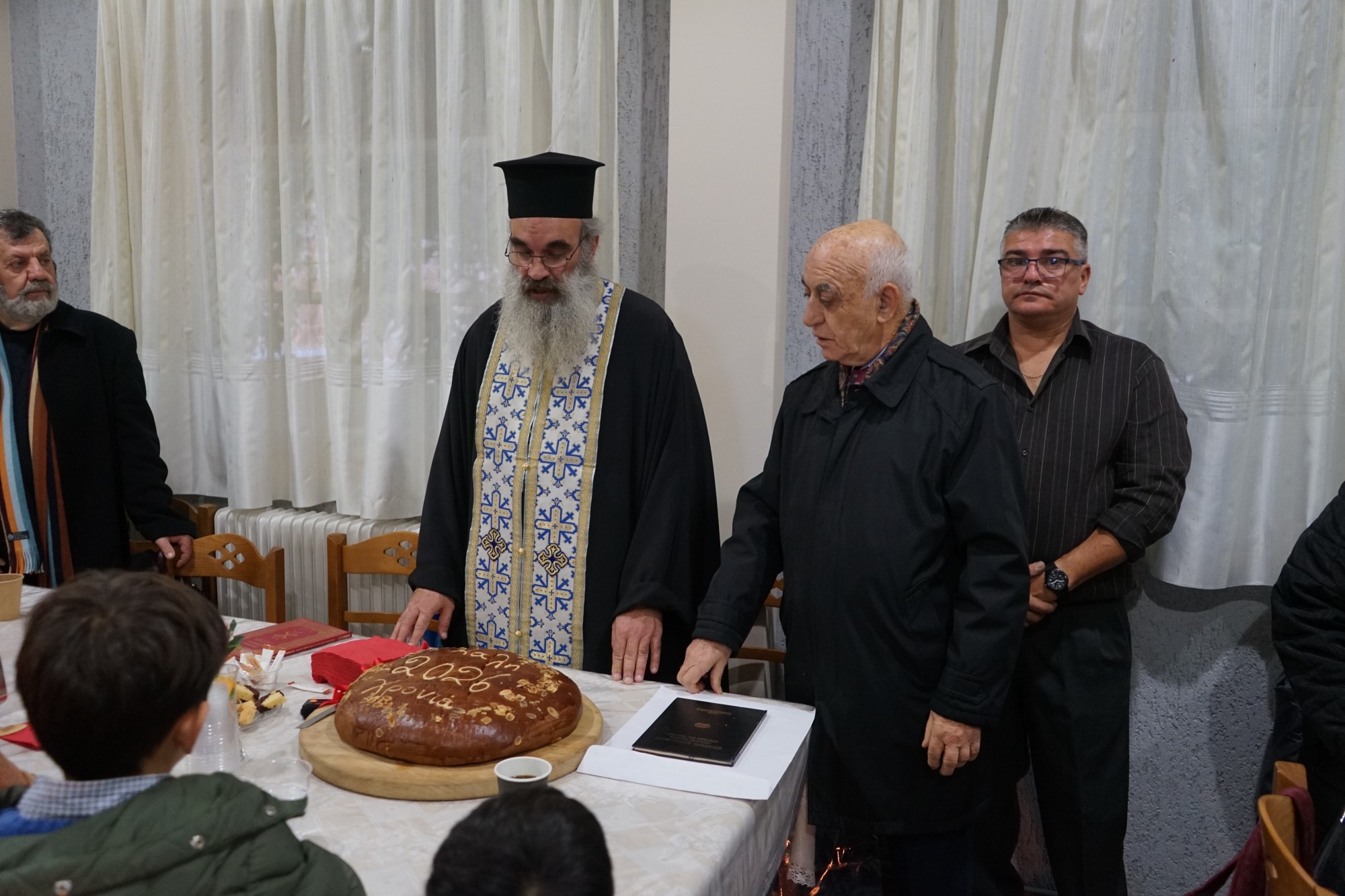 Ο ιερέας Γεώργιος Χανδρής, εκπρόσωπος του Σεβασμιωτάτου Μητροπολίτου και λειτουργός του γειτονικού Ιερού Ναού Αγίου Λουκά Λιβαδίων, ευλόγησε τη βασιλόπιτα, ενώ στους δύο τυχερούς που βρήκαν τα φλουριά προσφέρθηκαν από μία εικόνα του Αγίου Ιωάννου του Προδρόμου.