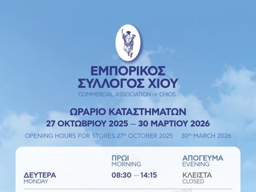Νέο χειμερινό ωράριο καταστημάτων στη Χίο από τη Δευτέρα 27 Οκτωβρίου