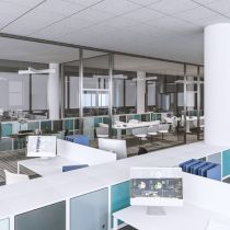 • Υφιστάμενο: Θα λειτουργήσει ως χώρος γραφείων, με χαμηλά χωρίσματα και διάταξη openplan. Σε κεντρικό σημείο θα υπάρχουν δύο συνεχόμενα γυάλινα meetingroom, με δυνατότητα να λειτουργήσουν και ως ένα ενιαίο, μεγαλύτερο, για να πραγματοποιούνται εκεί συναντήσεις και παρουσιάσεις.