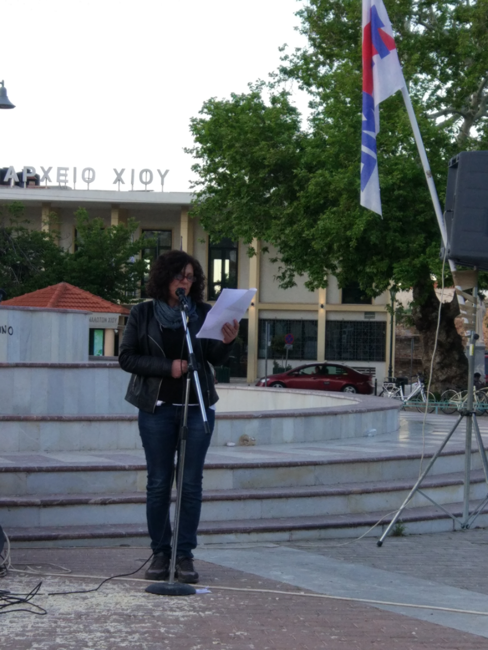 Στα πλαίσια των πρωτομαγιάτικων εκδηλώσεων του ΠΑΜΕ το Σωματείο Ιδιωτικών Υπαλλήλων και Εμποροϋπαλλήλων Χίου και ο Σύλλογος Γυναικών Χίου πραγματοποίησαν εκδήλωση την Τρίτη 25 Απριλίου 2017 στην πλατεία Βουνακίου.
