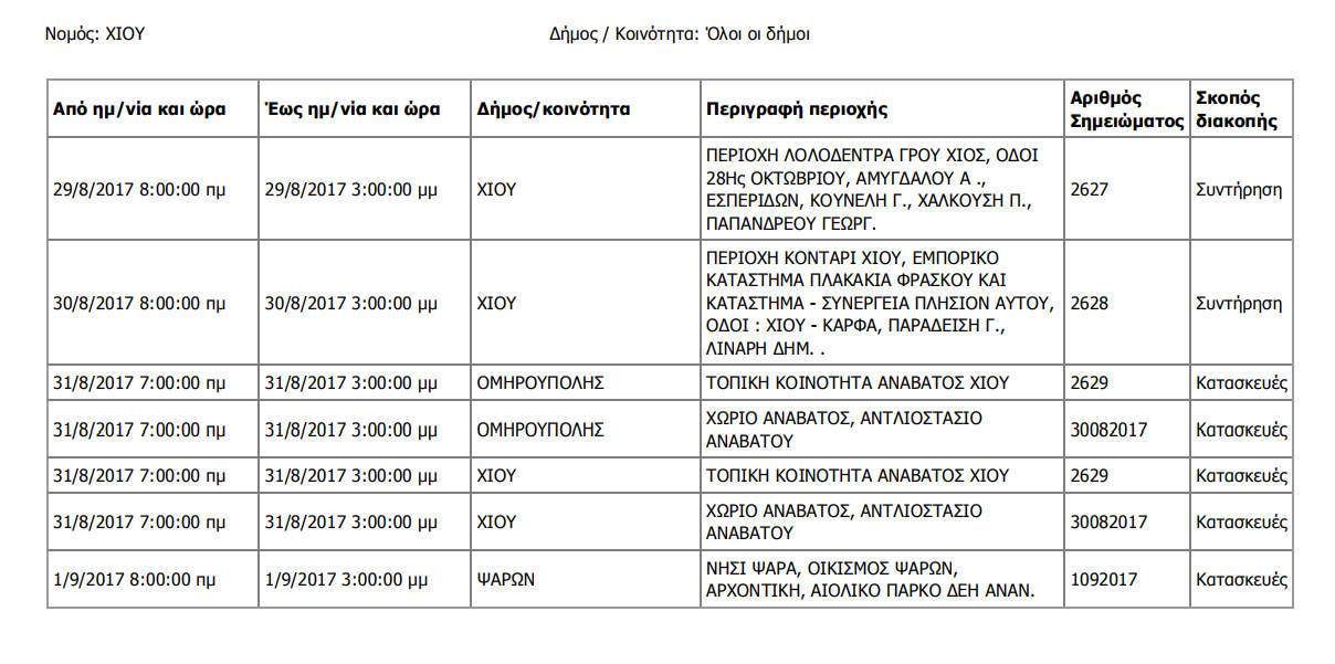 Σε κατασκευαστικές εργασίες κι εργασίες συντήρησης δικτύου προχωρά ο ΔΕΔΔΗΕ ανακοινώνοντας διακοπές ρεύματος από σήμερα μέχρι και την 1η Σεπτεμβρίου.