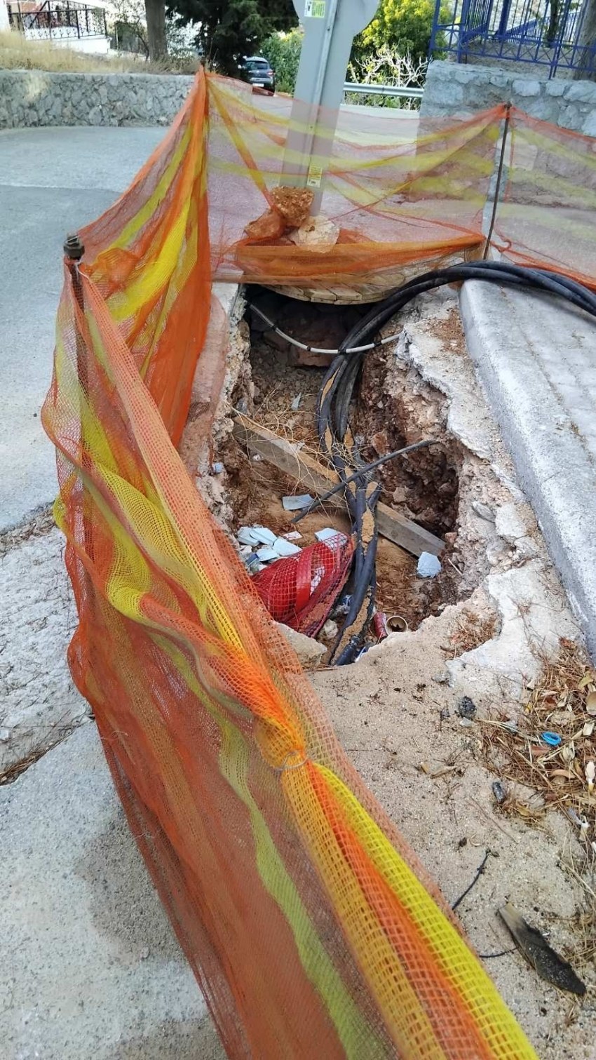 Σε αρκετά σημεία του χωριού, το οδόστρωμα είναι πλέον επικίνδυνο όχι μόνο για τα διερχόμενα οχήματα αλλά και για τους πεζούς. Οι κάτοικοι κάνουν λόγο για «ανοιχτές παγίδες» που παραμένουν ακάλυπτες, χωρίς προστατευτικά μέτρα, κορδέλες ή σήμανση.