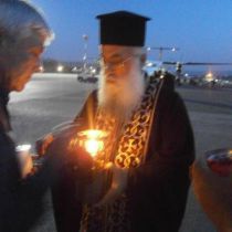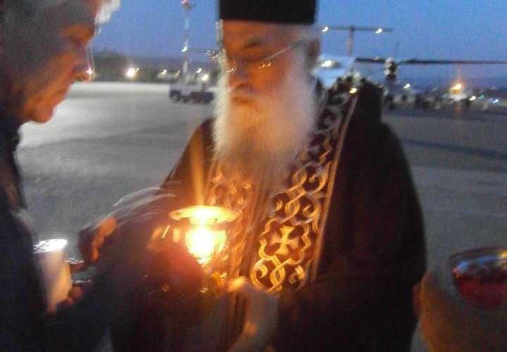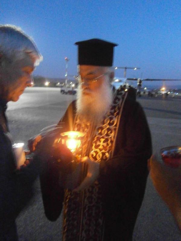 Στις 20:30 όπως ήταν προγραμματισμένο έφθασε στη Χίο το Άγιο Φως το οποίο παρέλαβε ο Γενικός Αρχιερατικός Επίτροπος της Ι.Μ. Χίου π. Δημήτριος Γιόμελος. Το Άγιο Φως μεταφέρθηκε στις 21:00 στην Ι.Μ. Χίου και από εκεί στις ενορίες όλου του νησιού.