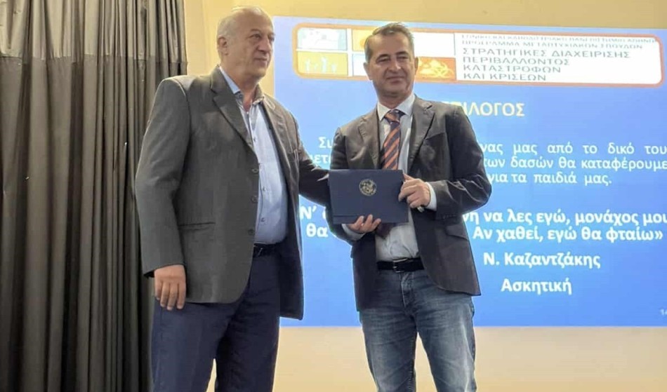 Στο τέλος της εκδήλωσης, ο Δήμαρχος Χίου, κ. Ιωάννης Μαλαφής, απένειμε τιμητική πλακέτα στον Δρ. Βασίλειο Μαρτζακλή, εκφράζοντας τις ευχαριστίες της Δημοτικής Αρχής για τη σημαντική συμβολή του στην επιμόρφωση στελεχών και την ενίσχυση της ετοιμότητας του νησιού. «Η γνώση και η εμπειρία που μεταδώσατε σήμερα αποτελούν πολύτιμο εργαλείο για την Πολιτική Προστασία της Χίου», ανέφερε χαρακτηριστικά ο κ. Μαλαφής.