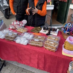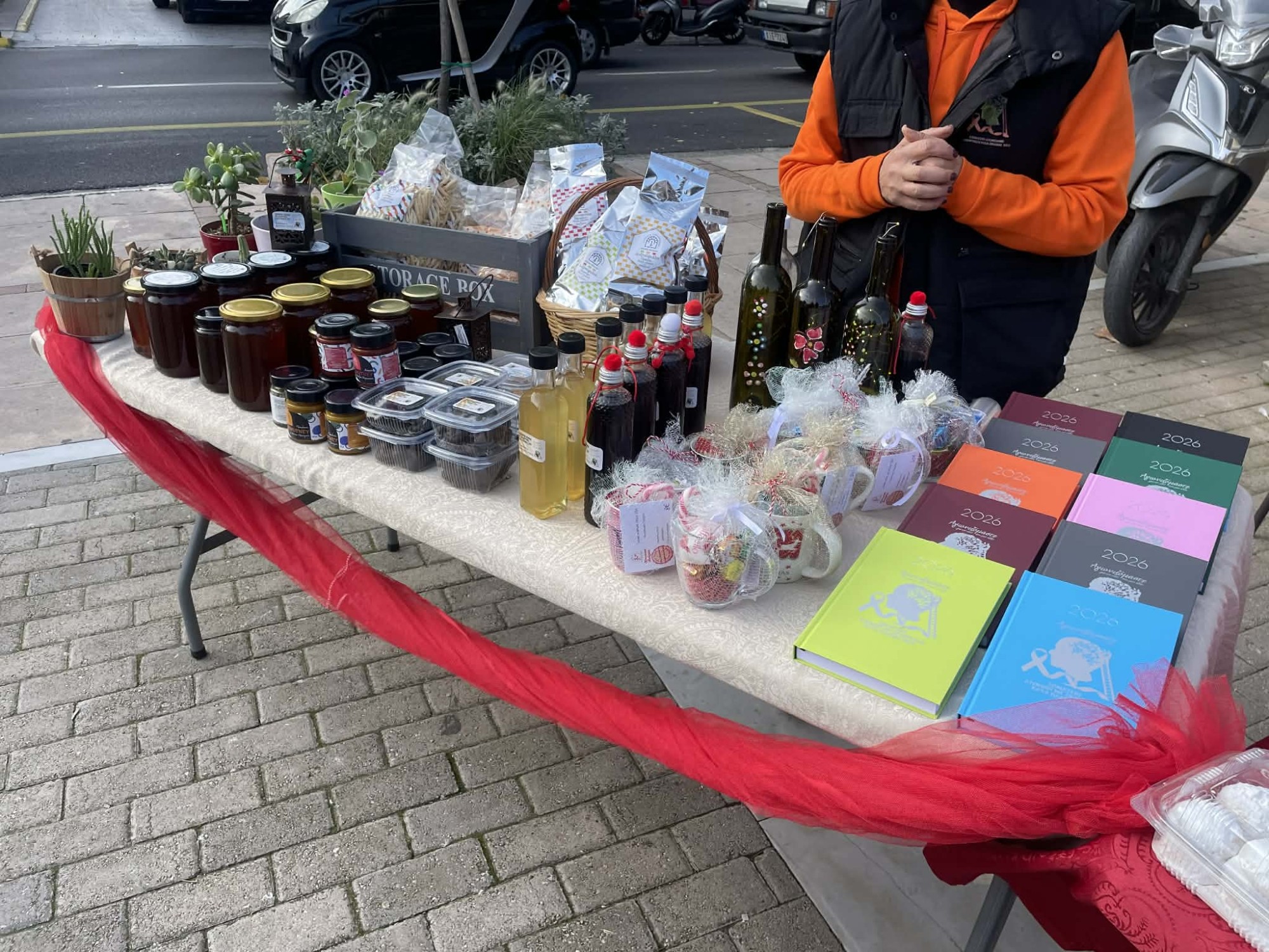 Οι πάγκοι του μπαζάρ γεμίζουν καθημερινά με νέα χειροποίητα είδη, τα οποία έχουν φτιαχτεί με φροντίδα και μεράκι από τα μέλη και τους υποστηρικτές του Σωματείου. Σπιτικά λικέρ, γλυκά, γούρια, στολίδια και η ετήσια ατζέντα – σε πληθώρα χρωμάτων και σχεδίων – δημιουργούν έναν γιορτινό χώρο που συνδυάζει την αγορά με τον κοινωνικό σκοπό.