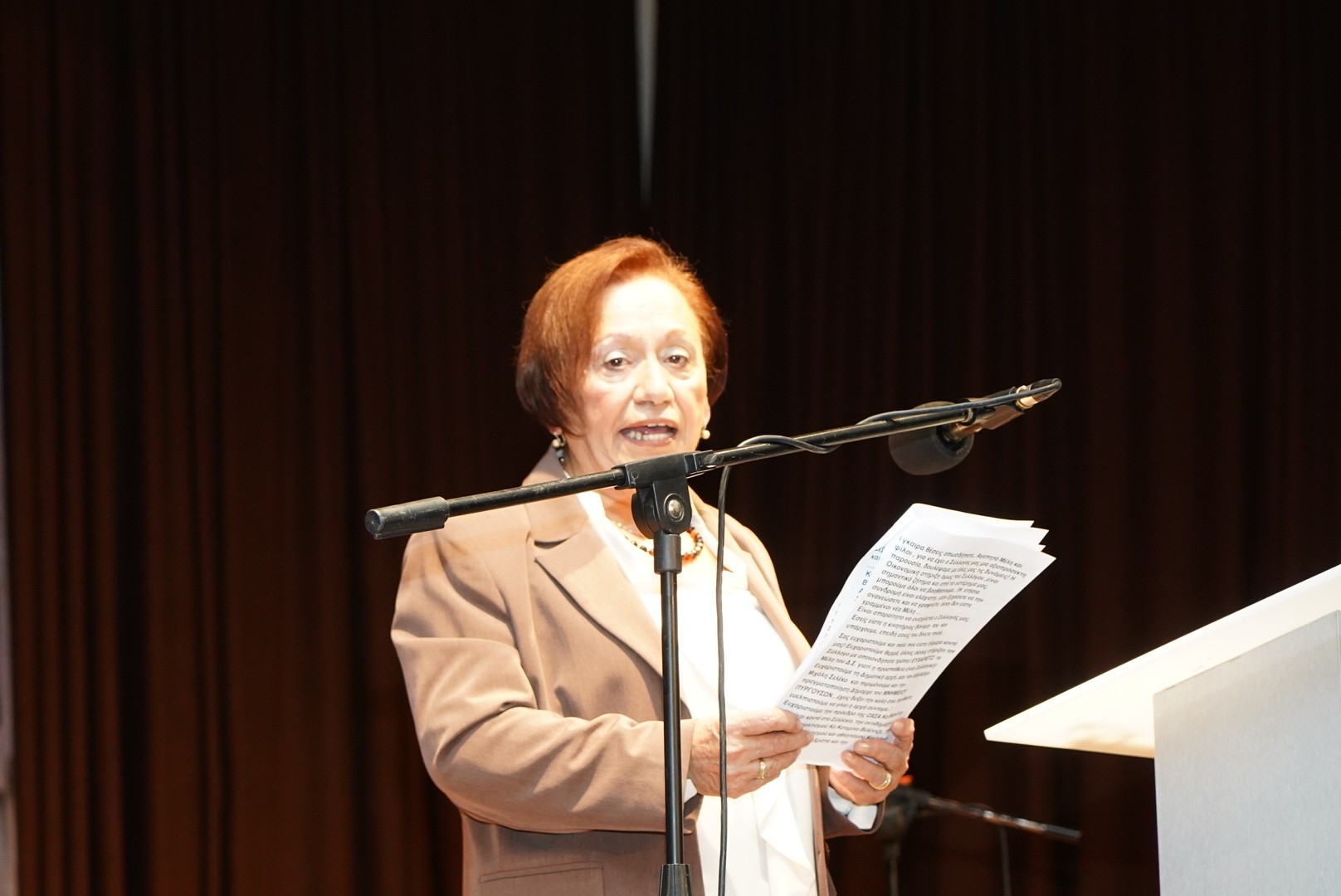 Ανοίγοντας την εκδήλωση, η πρόεδρος του Συλλόγου κα Μαρία Μπρη-Παπαμακαρίου καλωσόρισε το πολυπληθές κοινό, ευχήθηκε καλή χρονιά και ευχαρίστησε θερμά τους παρευρισκόμενους για την ένθερμη παρουσία τους. Στη συνέχεια, παρουσίασε τον απολογισμό της πλούσιας σε δράσεις χρονιάς που πέρασε και απηύθυνε κάλεσμα προς τη νέα γενιά να πλαισιώσει ακόμη πιο ενεργά τον Σύλλογο.