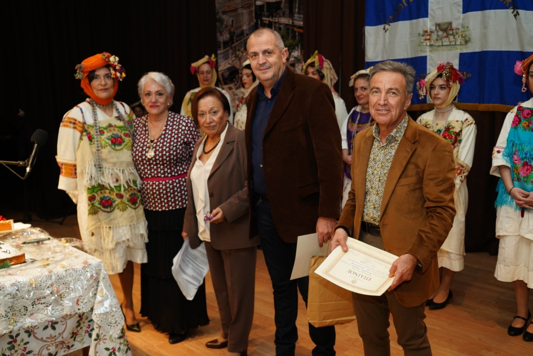Η ατμόσφαιρα έγινε ακόμη πιο ζεστή με την εμφάνιση της Χορευτικής Ομάδας του Συλλόγου, η οποία εντυπωσίασε με παραδοσιακούς χορούς φορώντας τις αυθεντικές, πλουμιστές πυργούσικες φορεσιές. Παράλληλα, η Χορωδία του Ωδείου Χαϊδαρίου ταξίδεψε το κοινό με τα Χιώτικα παινέματα και χριστουγεννιάτικα τραγούδια, αποσπώντας το θερμό χειροκρότημα.
