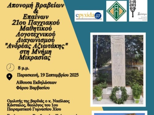 Οι νικητές του 21ου Παγχιακού Μαθητικού Λογοτεχνικού Διαγωνισμού