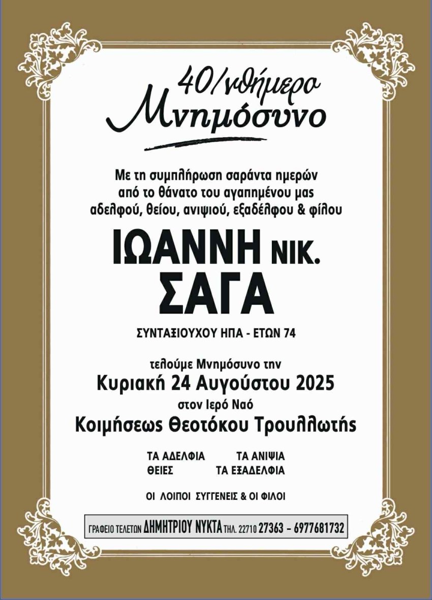 Με τη συμπλήρωση σαράντα ημερών από το θάνατο του αγαπημένου μας αδελφού, θείου, ανιψιού, εξαδέλφου & φίλου