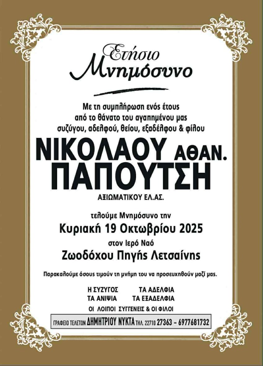 τελούμε μνημόσυνο την Κυριακή 19 Οκτωβρίου 2025