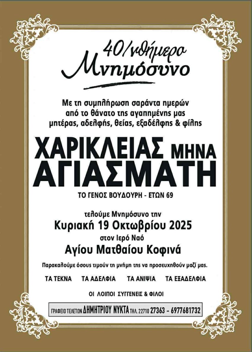 Με τη συμπλήρωση σαράντα ημερών