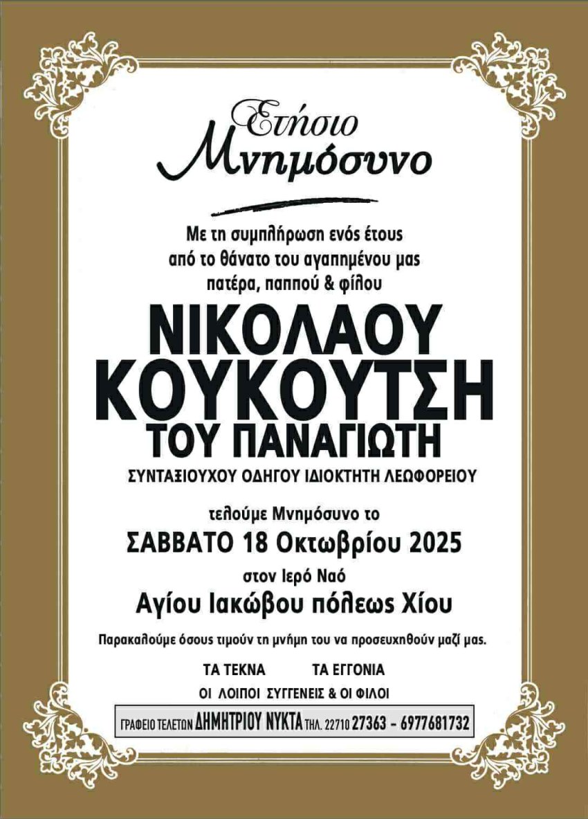 Παρακαλούμε όσους τιμούν τη μνήμη του να προσευχηθούν μαζί μας.