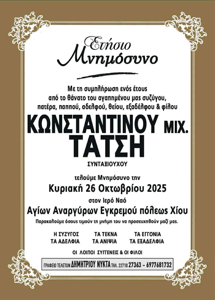 Παρακαλούμε όσους τιμούν τη μνήμη του να προσευχηθούν μαζί μας.
