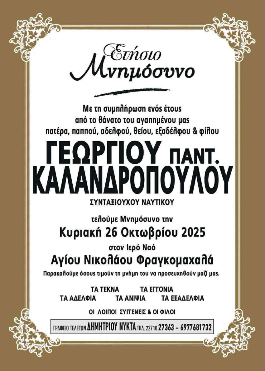 από το θάνατο του αγαπημένου μας πατέρα, παππού, αδελφού, θείου, εξαδέλφου & φίλου
