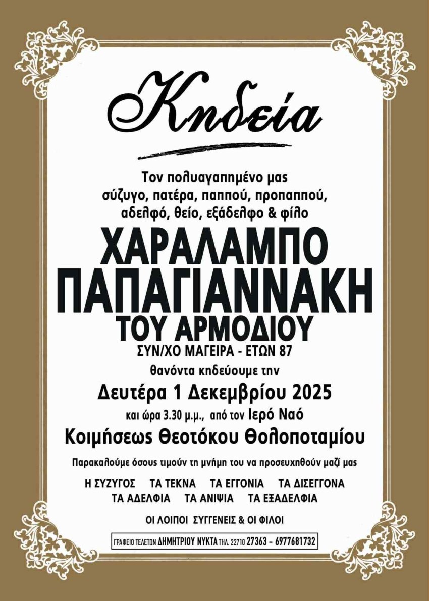 Παρακαλούμε όσους τιμούν τη μνήμη του να προσευχηθούν μαζί μας.