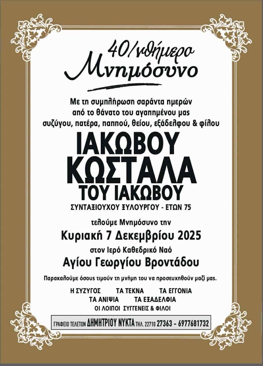 Παρακαλούμε όσους τιμούν τη μνήμη του να προσευχηθούν μαζί μας.