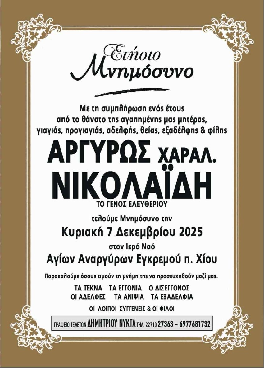 ΑΡΓΥΡΩΣ ΧΑΡΑΛ. ΝΙΚΟΛΑΪΔΗ