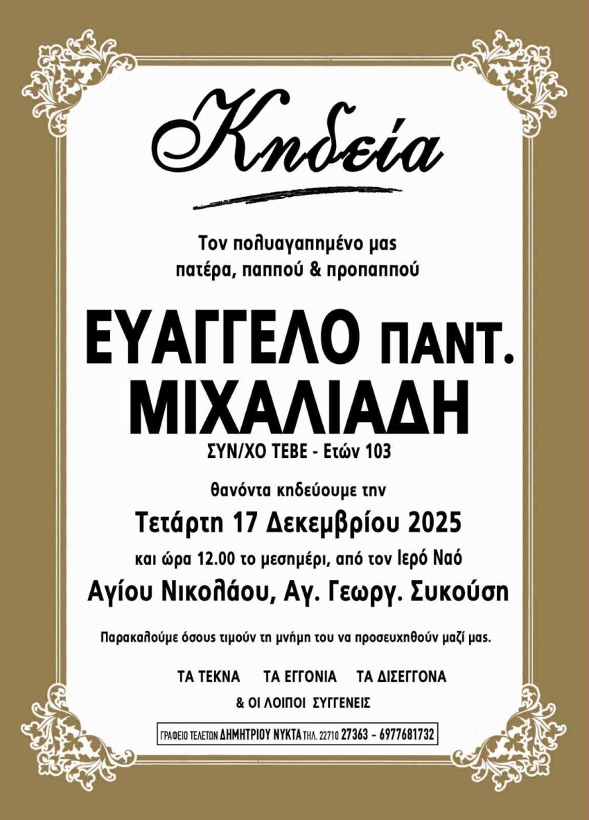 Παρακαλούμε όσους τιμούν τη μνήμη του να προσευχηθούν μαζί μας
