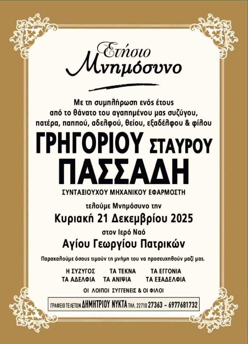 ΓΡΗΓΟΡΙΟΣ ΣΤΑΥΡΟΥ ΠΑΣΣΑΔΗΣ