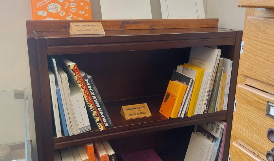 Όπως εξηγεί ο ίδιος, η Βιβλιοθήκη Κοραή του παραχώρησε τρία ανοιχτά ράφια στην κεντρική αίθουσα ανάγνωσης από τον Αύγουστο του 2023, με σκοπό να φιλοξενήσει βιβλία καλλιτεχνών και να τα καταστήσει άμεσα προσιτά στους χρήστες της βιβλιοθήκης. «Είναι ιδιαίτερα σημαντικό ότι αυτά τα ράφια είναι ανοιχτά και δεν είναι κρυμμένα στα αρχεία των σπάνιων συλλογών», σημειώνει ο κ. Πίχλερ Μυριαγκός, τονίζοντας ότι η απομόνωση τέτοιων έργων σε ειδικές ενότητες περιορίζει τη σχέση τους με το κοινό.