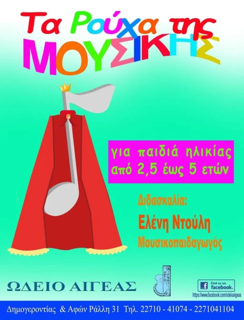 Μουσικής Προπαιδείας, "Τα Ρούχα της Μουσικής", για ηλικίες από 2,5 ετών.