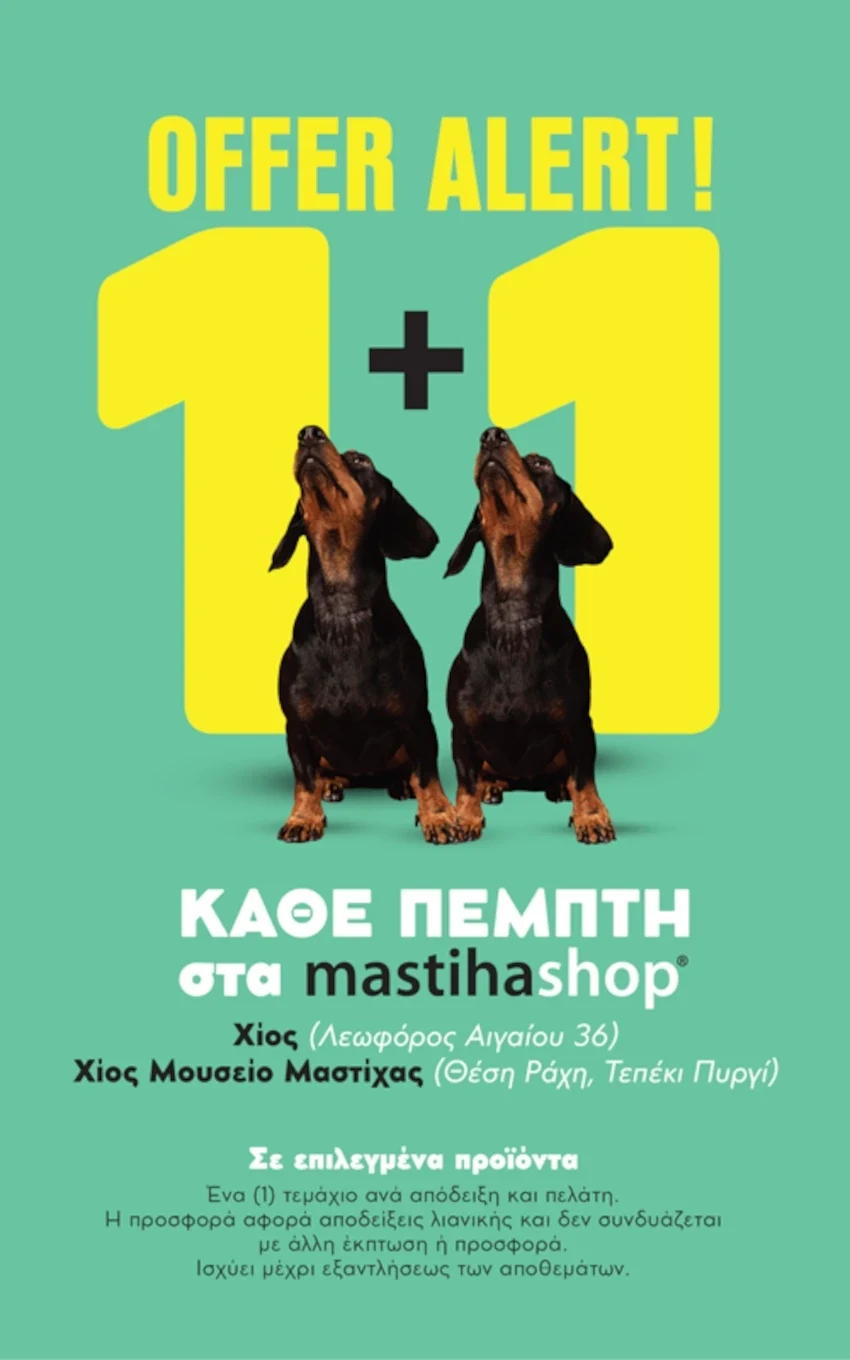 Η εμπειρία mastihashop γίνεται ακόμη πιο απολαυστική κάθε Πέμπτη! Με κάθε αγορά από τα φυσικά καταστήματα mastihashop στη Χίο, παίρνεις δώρο ένα επιπλέον προϊόν της επιλογής σου, σε επιλεγμένους κωδικούς.